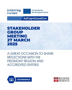 The LAMORO Development Agency held an online Stakeholder Group Meeting by involving stakeholders – Piemonte Region and accredited bodies regarding the ADCAP4GOODGOV project financed by the Interreg EUROPE 2021-2027 program. The project ADCAP4GOODGOV is led by the Ministry of Development, Public Works, and Administration of Romania, based in Bucharest, while LAMORO is a project partner.